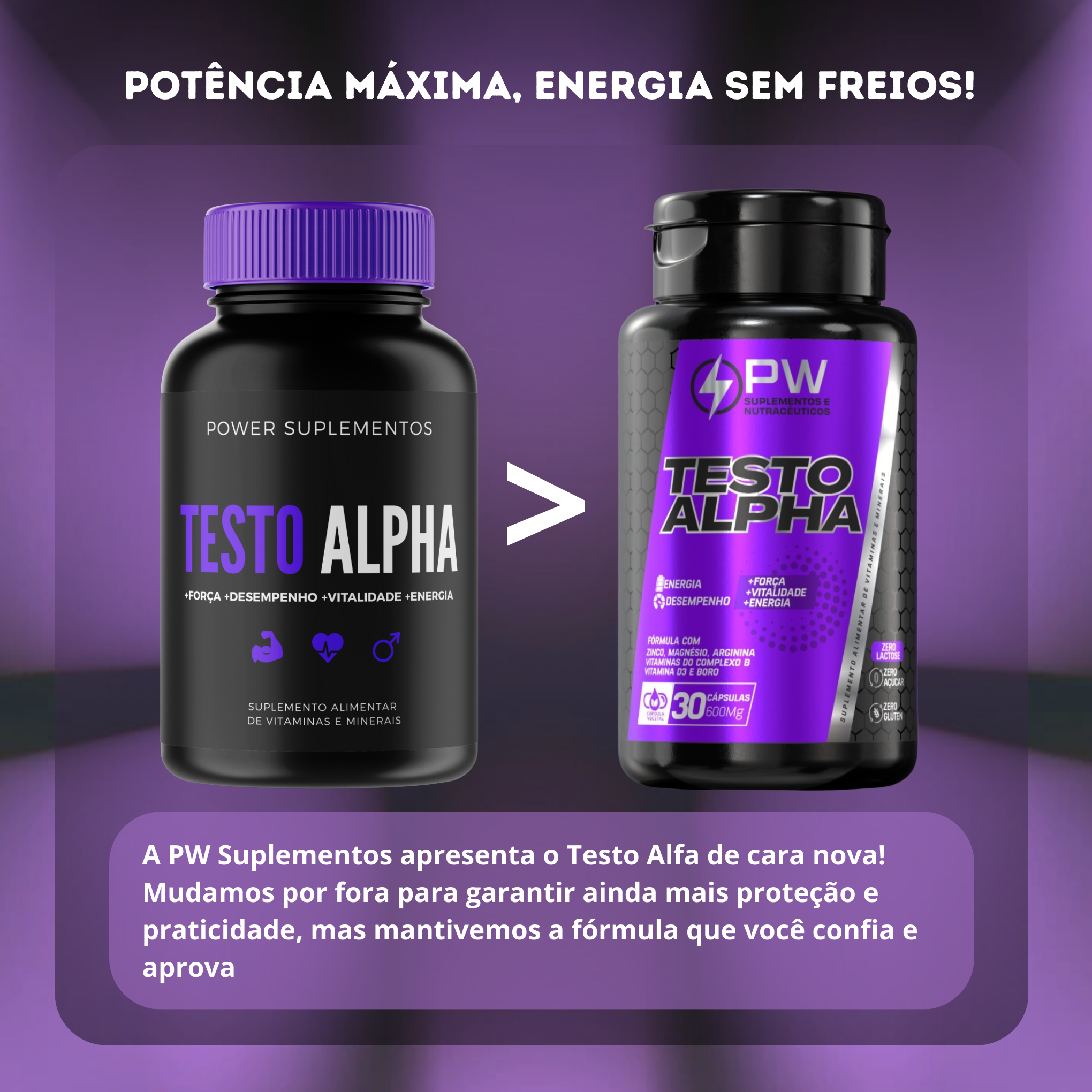O Testo Alpha é um suplemento multivitamínico masculino especialmente formulado para quem busca aumentar o vigor, energia, potência e bem-estar no dia a dia. Ideal para homens que querem melhorar sua performance física e mental, o Testo Alpha é uma solução natural para otimizar seus níveis de testo, contribuir para o aumento de massa muscular e potencializar o seu desempenho nos treinos e atividades diárias.
