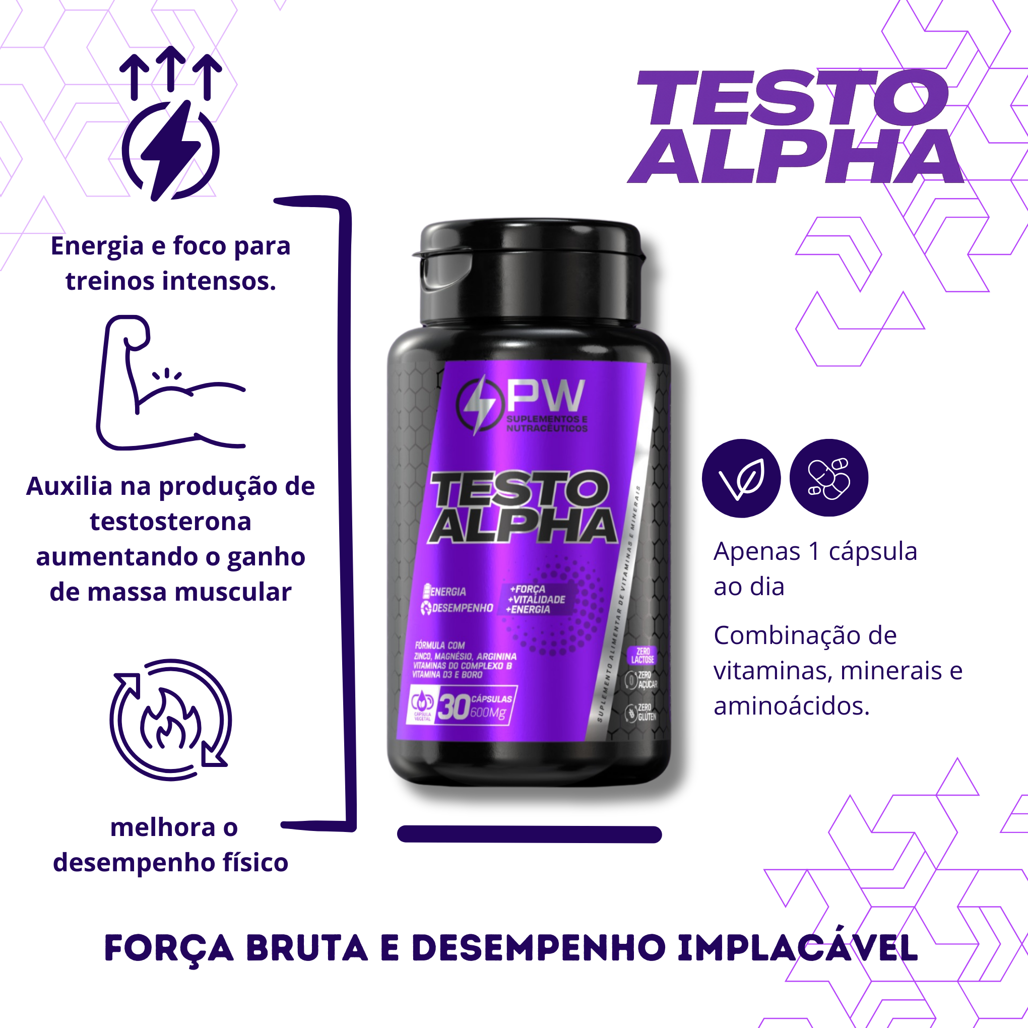 O Testo Alpha é um suplemento multivitamínico masculino especialmente formulado para quem busca aumentar o vigor, energia, potência e bem-estar no dia a dia. Ideal para homens que querem melhorar sua performance física e mental, o Testo Alpha é uma solução natural para otimizar seus níveis de testo, contribuir para o aumento de massa muscular e potencializar o seu desempenho nos treinos e atividades diárias.